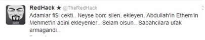 Redhack, takipçilerini de istedikleri kurumun borçlarına müdahale etmeye çağırdı.