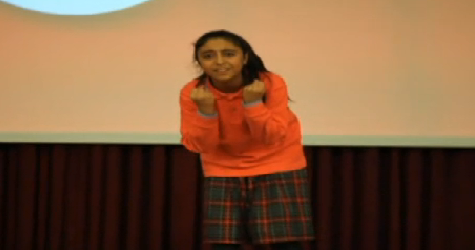 Tiyatral şiirinde kimi zaman kendini yerlere atan, kimi zaman bayrağa dönüp milli duyguları dile getiren öğrenci, herkesi duygulandırdı.