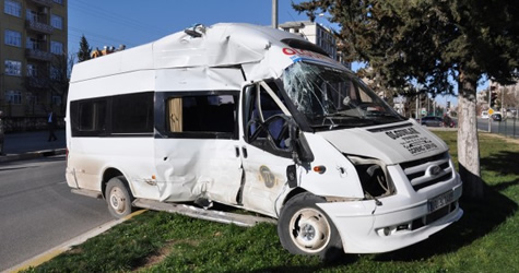 Mehmet Bağcı (43) idaresindeki 02 LA 223 plakalı tır, Atatürk Bulvarı Köy Hizmetleri Kavşağı'nda, Seyfettin Bayır'ın (25) kullandığı 02 S 0405 plakalı öğrenci servisiyle çarpıştı.