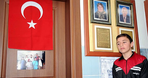 Okul Müdürü Vedat Ali Gür'ün odasında kapının üzerine Türk bayrağı asıldı ve öğrencilerle çekilmiş fotoğrafları yapıştırıldı.