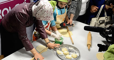 Cumhurbaşkanı Abdullah Gül'ün eşi Hayrünnisa Gül, açılışını yaptığı Yaşam Becerileri Merkezi'nde öğrencilerle hamur açıp mantı büktü.