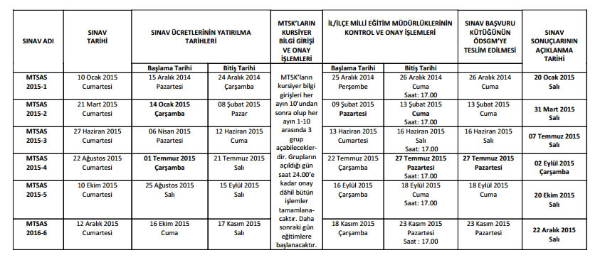 MTSKS takviminde belirtilen sınav ücreti yatırma süreleri değiştirilmez ya da uzatılmaz.