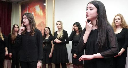 "İşaret dili öğreticiliği ve tercümanlığı" kursu öğrencileri, İstiklal Marşı ile bazı şarkıları işaret diliyle ifade etti.